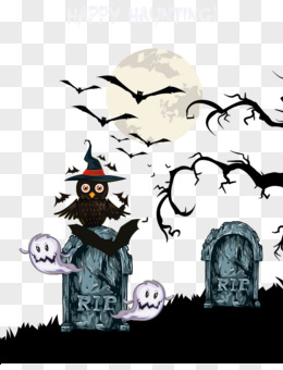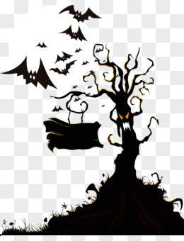 手绘卡通万圣节之蝙蝠枯树小场景元素