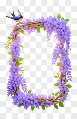 3D立体紫藤花边框燕子卡通免抠元素