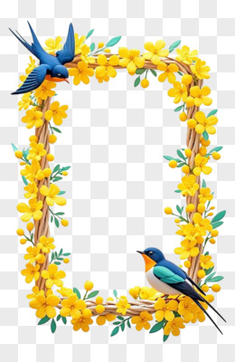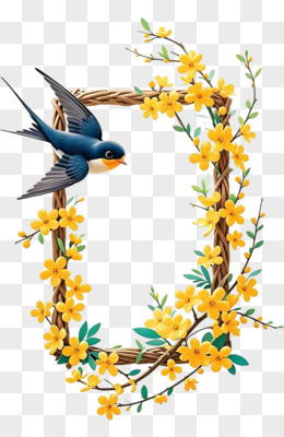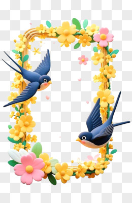 3D立体黄色迎春花边框燕子春天免抠元素