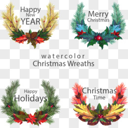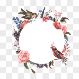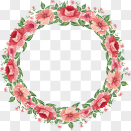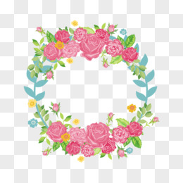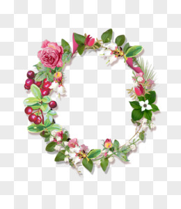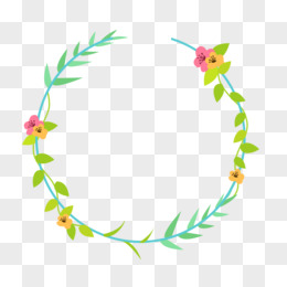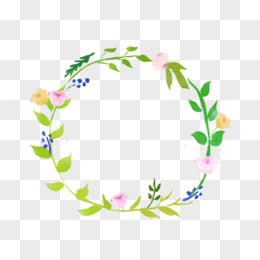 手绘植物五彩花卉森系绿色叶子花环装饰边框