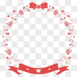 红色蝴蝶结彩带圆形边框免抠元素