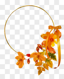 黄色花卉植物树叶蝴蝶结圆形边框