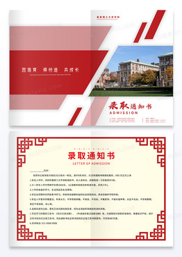 红色中国风边框竖版录取通知书