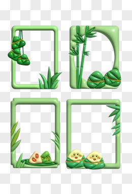 一组膨胀风3D立体粽子竹子边框合集元素