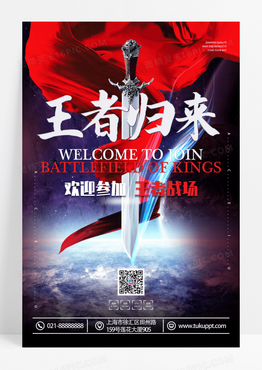 宝剑红绸王者归来竞技游戏比赛海报设计