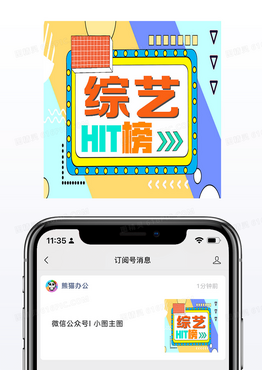 几何边框公众号次图综艺HIT榜新媒体手机海报小图