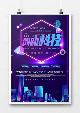 城市简约扁平霓虹灯科技感创新科技扁平简约商务风海报