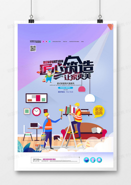 创意扁平风家装节装修季宣传海报设计