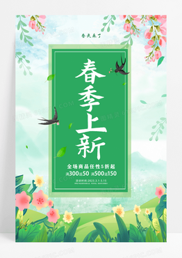 春天花草插画春季上新海报