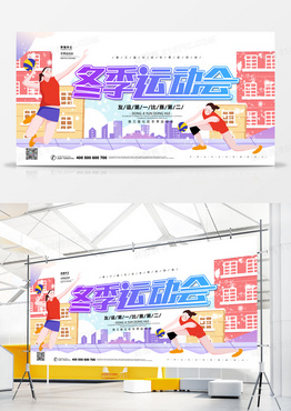 冬季运动会扁平化简约风展板设计