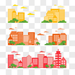 扁平化 城市 建筑 高楼 城镇 公路 招牌 树木 地产