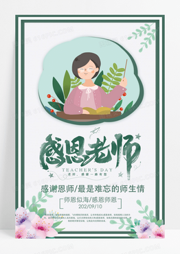 简约清新礼颂师恩教师节卡通扁平化绿色海报