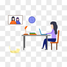 手绘卡通扁平化在家辛苦加夜班的女孩子