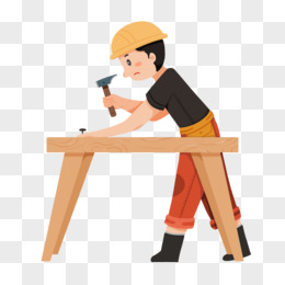 手绘卡通房屋装修工人素材