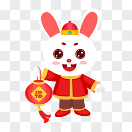 一组兔年可爱兔子手账贴纸套图合集之兔子手拿灯笼素材