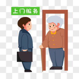 一组手绘卡通扁平适老服务场景之上门服务素材