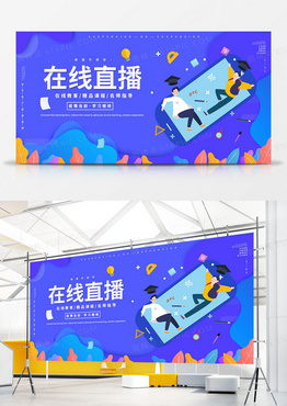 停课不停学在线直播扁平风展板