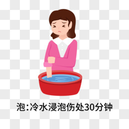 一组卡通扁平风矢量烫伤人物救治方法套图系列三素材