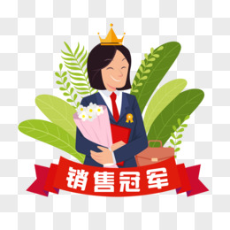 矢量扁平风金牌销售冠军人物形象素材