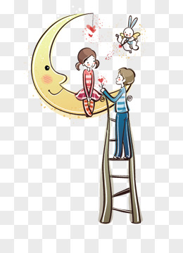 手绘情侣恋爱为爱欢呼场景免抠元素