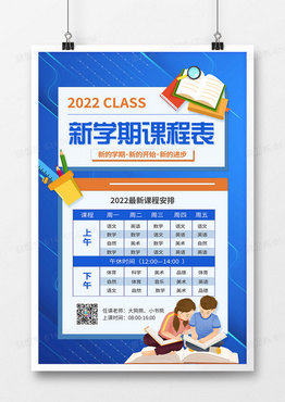 蓝色卡通风新学期课程表海报