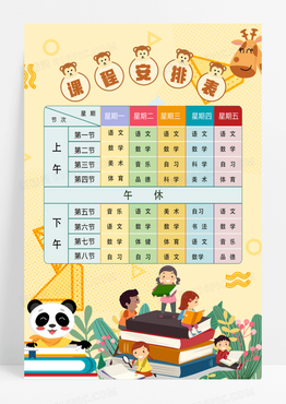 浅色卡通课程安排标宣传海报