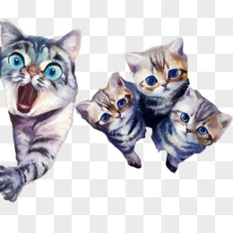 小猫水彩画免抠素材