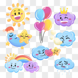 一组手绘卡通天气可爱表情包贴纸套图一素材