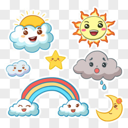 一组手绘卡通天气可爱表情包贴纸套图四素材