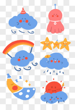 一组手绘卡通天气可爱表情包贴纸套图五素材