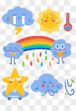 一组手绘卡通天气可爱表情包贴纸套图六素材