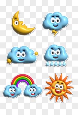 一组矢量膨胀风3D立体可爱表情天气贴纸合集元素