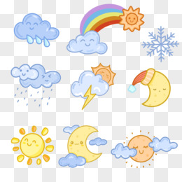 一组手绘卡通天气可爱表情包贴纸套图二素材