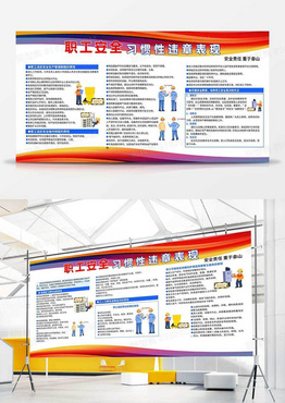 蓝色大气职工安全习惯性违章表现双面展板宣传栏安全违章