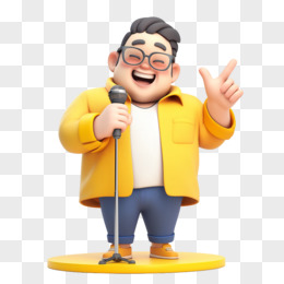 3D卡通一个男人在话筒旁讲脱口秀台免抠元素
