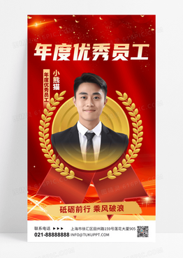 红色简约喜庆年度优秀个人表彰优秀员工奖牌手机海报