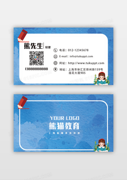 蓝色创意合成笔触纹理背景文化教育名片模板
