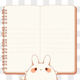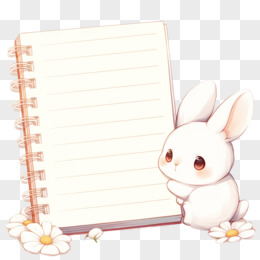 可爱白色兔子拿着笔记本边框免抠元素