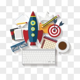 扁平化元素 笔记本 火箭 键盘 咖啡