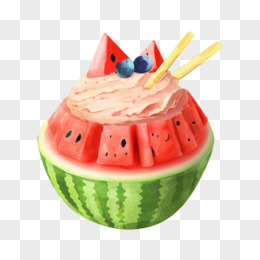 手绘夏天女孩吃西瓜冰沙微场景元素