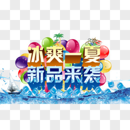 唯美卡通夏日元素清凉一夏冰爽放价艺术字伞太阳椰树