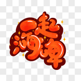 卡通红色一起嗨啤艺术字设计