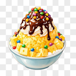 卡通水彩插画风格夏季饮品冰淇淋冰棍菠萝绵绵冰免抠元素