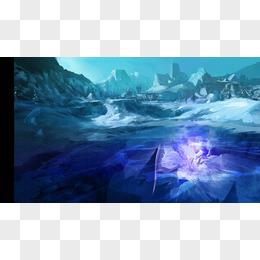 淡蓝色冰川漂浮花瓣气泡简洁大方树叶树丛
