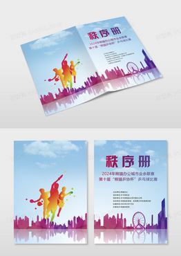 蓝色简洁兵乓球比赛秩序册画册封面