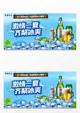 冰山冰爽一夏啤酒促销海报冰块素材蓝色背景