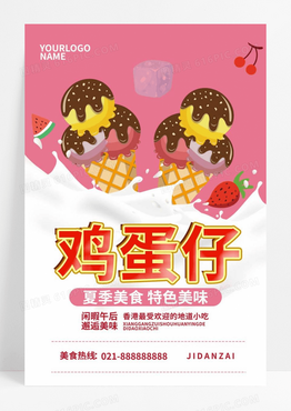 甜品冰淇淋粉色简约夏天夏季港式香港鸡蛋仔促销宣传海报