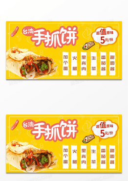 黄色简约手绘风可爱清新台湾手抓饼宣传展板