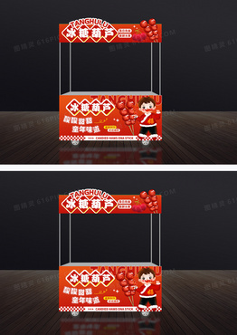 红色国潮冰糖葫芦小吃车门头