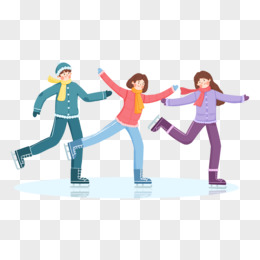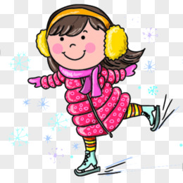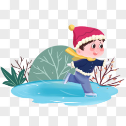 手绘男孩冬季在冰面上滑冰玩耍素材